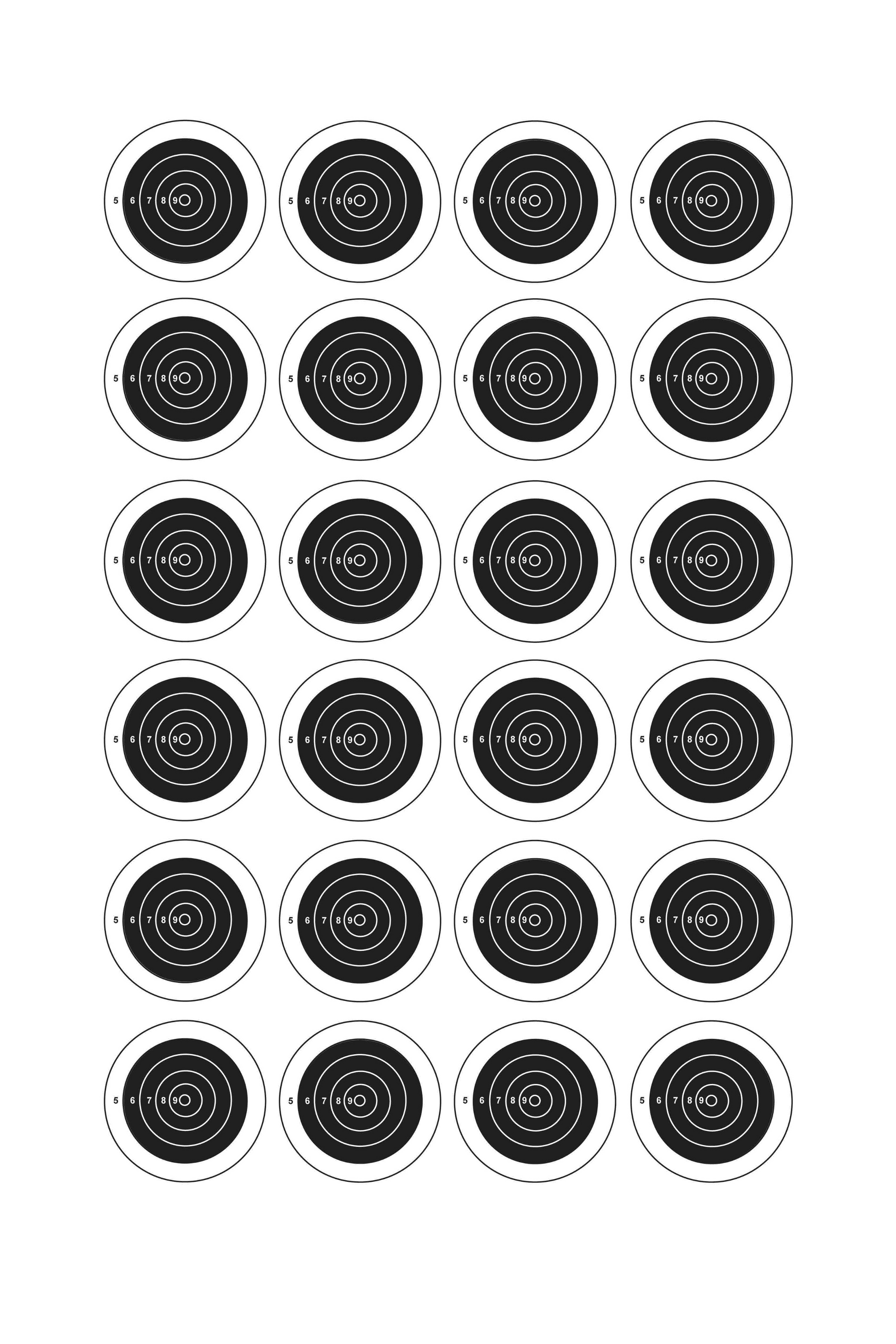 Maximize your training sessions with the 24-Spot Bullseye [8x14] target—engineered for precision shooters who want efficient, high-volume practice without constantly changing targets. This compact sheet features 24 clearly defined bullseyes, each measuring 1 ¾ inches in diameter, making it ideal for tight grouping drills, zeroing optics, or refining marksmanship fundamentals.