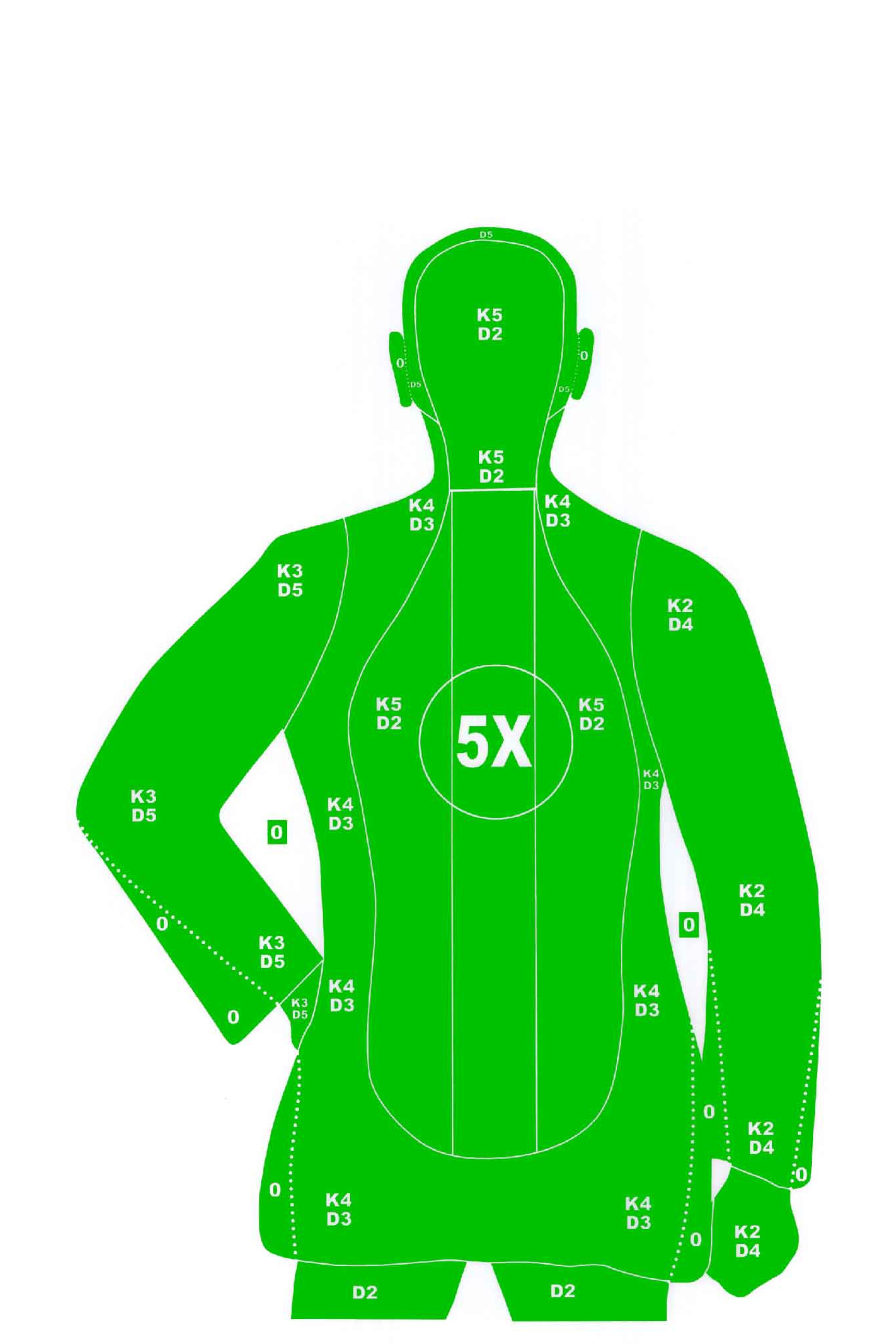 - Classic B-21 silhouette with scoring zones for defensive training