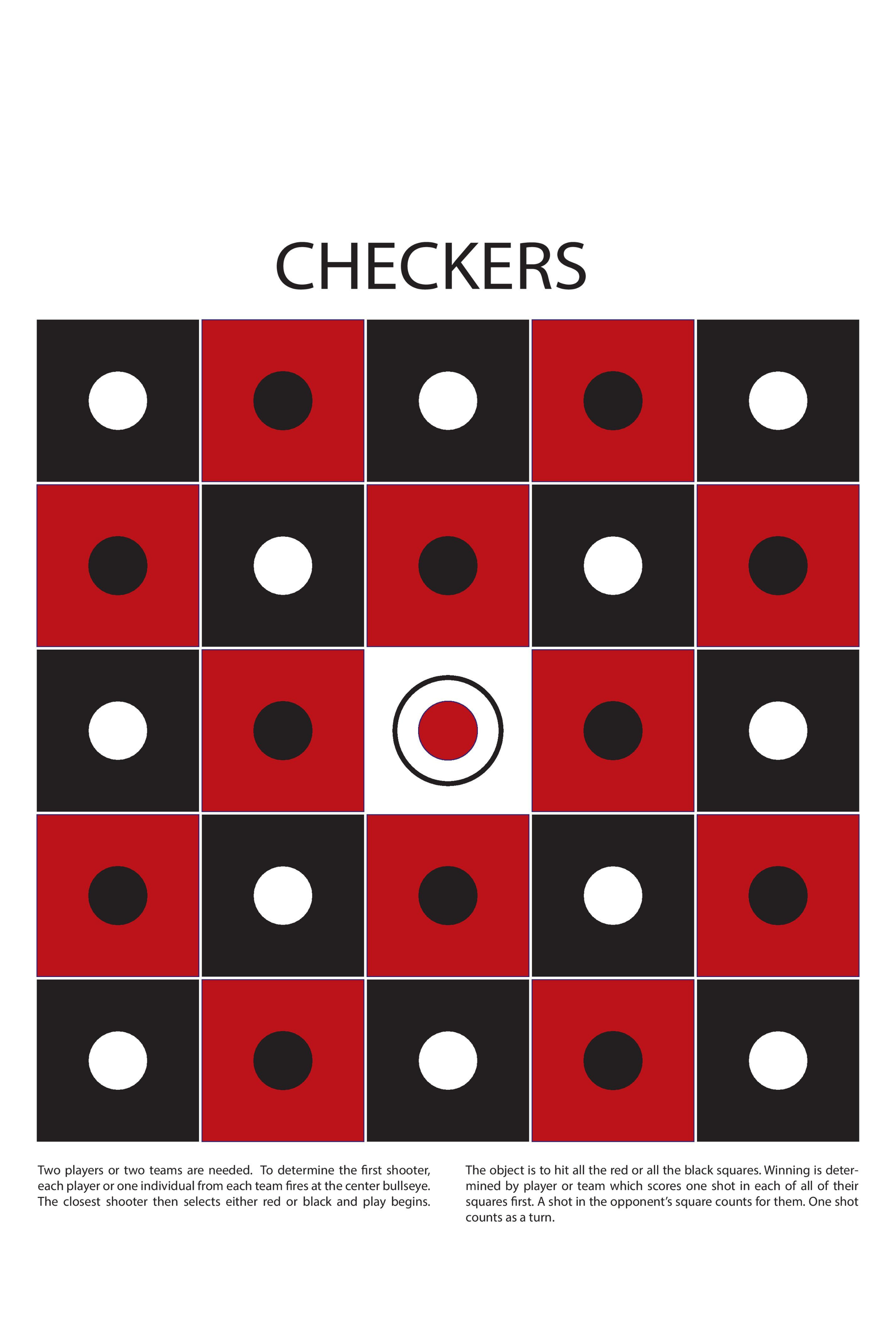 Bring fun and focus to the range with the Checkers [19x25"] target—designed for interactive, competitive shooting sessions that combine marksmanship with classic gameplay. Featuring a full checkers board layout, this target allows shooters to take turns “capturing pieces” by landing accurate shots in designated squares, making it perfect for casual matches and sharpshooting games with friends.